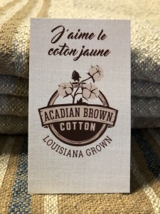 Coton jaune, Acadian brown cotton, is an heirloom variety grown by the Acadians or Cajuns, the French settlers exiled from Nova Scotia by the English in the 1760s, who resettled in the bayous and prairies of south Louisiana. The Acadians, who were skilled in making fabrics from wool, adapted to raising brown cotton, a variety that originated in South America and made its way to Louisiana through Mexico and Texas. Fibers have natural tan shades and were traditionally used in handwoven blankets, bedding and clothing.