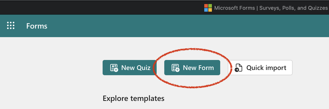 Microsoft Forms is an online survey software program that allows users to create surveys and quizzes; the data submitted to a Form can be exported to Microsoft Excel or viewed live using a feature of the Forms software called Present. Microsoft Forms is part of Office 365, and subsequently is available to all NSU faculty and staff who possess an @nsula.edu account.
