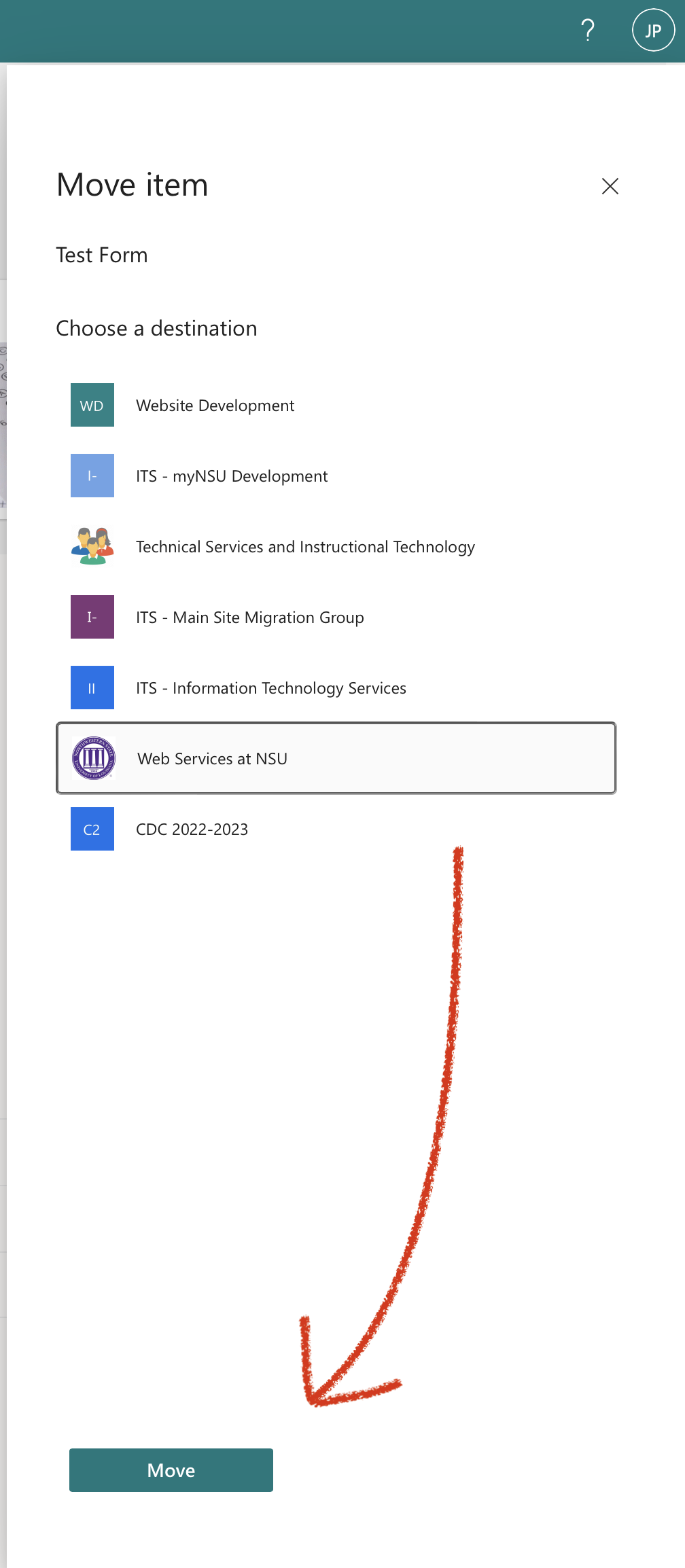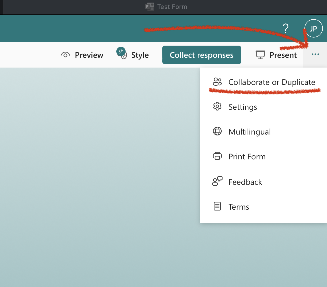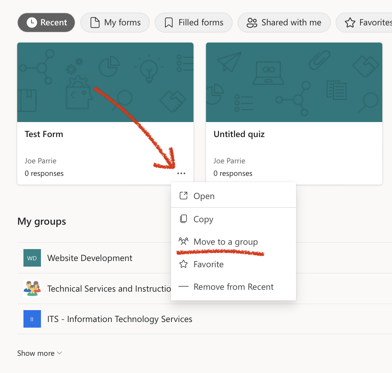 Perform the following steps if you have created a Group in Microsoft Teams and you wish to share access to the form with all members of your Team: