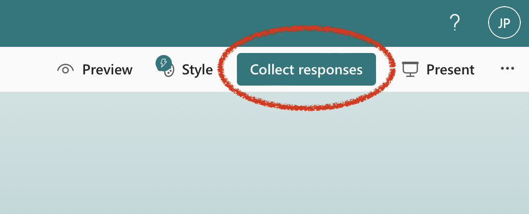 1. Open your Form and in bar above select the “Collect Responses” button at the top right (fig. c1). This will open a window centered on your screen, titled “Send and collect responses”.