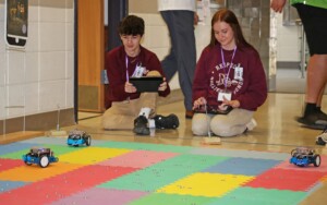 Natchitoches Central High School students Bentley Mobley and Brooklyn Adams guided robots around a course to collect magnets during “Metal Mining Mission,” a workshop presented during STEM (Science, Technology, Engineering and Mathematics) Day at Northwestern State University. The robot challenge allowed students to explore engineering design and automation, visit with faculty and current NSU students and learn about degree programs in NSU’s School of STEM.