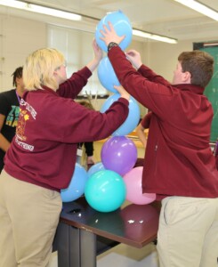 Ripplie Perkins and Robert Lloyd of Natchitoches Central competed with other student teams to build the tallest balloon tower using limited materials during STEM Day at Northwestern State University. They were among about 560 high school students from northwest and central Louisiana who participated in STEM Day to learn about degree programs in the Department of Biological and Microbiology, the Department of Engineering Technology, the Division of Mathematics, the Department of Physical Science and the Department of Veterinary Technology. Information on NSU’s School of STEM is available at www.nsula.edu/stem.